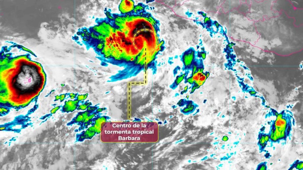 El fenómeno presenta vientos máximos sostenidos de 110 km/h y rachas de hasta 140 km/h, con desplazamiento hacia el oeste-noroeste a 19 km/h. De acuerdo con el pronóstico, Bárbara podría intensificarse a huracán categoría 1 durante el transcurso del día.
