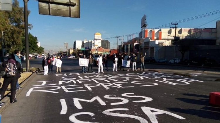 Rafael Soto, enfermero del Instituto Mexicano del Seguro Social (IMSS), publicó que el cierre en la avenida y la manifestación es también en apoyo a la doctora Ana Paola de Cosio Farías, quien renunció al instituto luego de denunciar inequidad en la aplicación de la vacuna y la falta del pago del bono covid.
