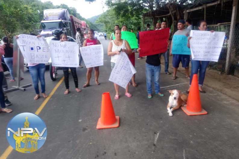 Desde las 8 de la mañana de este miércoles 11 de septiembre 2019, habitantes del poblado de San Ignacio, Bahía de Banderas, Nayarit, decidieron cerrar la carretera 200 de manera intermitente debido a que se está llevando a cabo una obra de encarpetamiento por parte de la SCT pero, dejaron de trabajar desde hace una semana y sin topes cruzar la carretera se volvió un gran peligro y aunque la policía federal adquirió el compromiso con la directora de la primaria de vigilar el cruce a la hora de entrada y salida de los niños a clases, el resto del día el cruce se vuelve como si fuera una ruleta rusa porque los conductores no respetan el límite de velocidad y el riesgo de ser atropellados es latente.