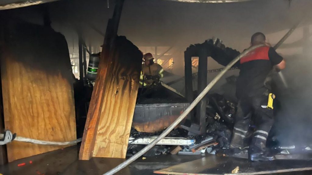 Elementos de la Dirección de Protección Civil y Bomberos de Puerto Vallarta contribuyeron a extinguir el incendio que se registró este miércoles en una bodega de la empresa Grupo Vidanta por el camino a la playa Boca de Tomates.
