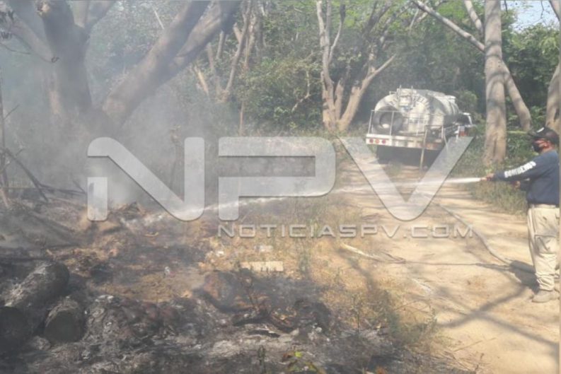 Hasta ese sitio arribó el personal de Protección Civil y Bomberos de Bahía de Banderas, a bordo de la unidad PC-103, para verificar el reporte, quienes al llegar informan a su base operativa que se trata de un basurero clandestino, donde se estaban quemando desechos de jardinera y palapas.