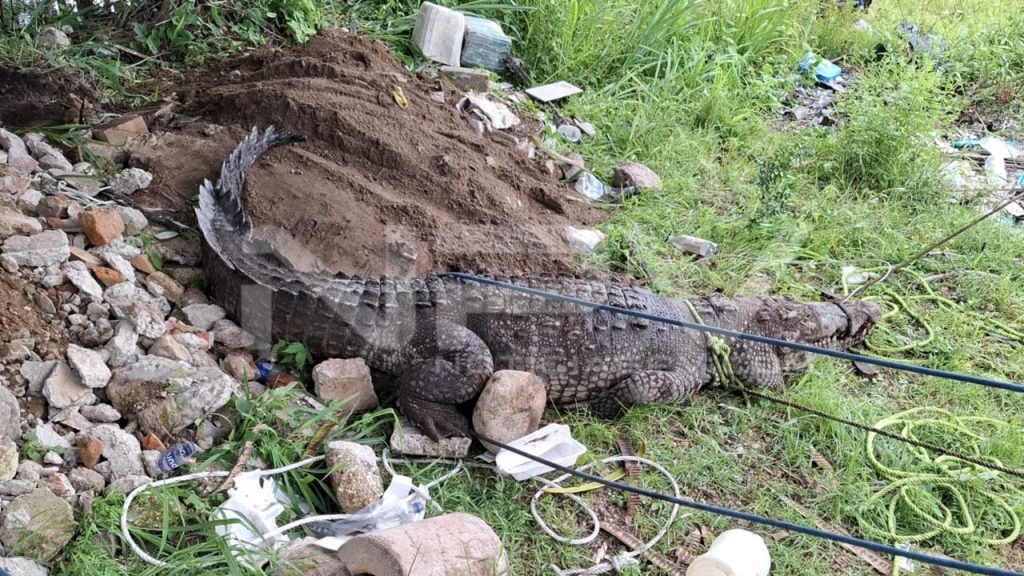 El hecho, fue registrado en un hotel ubicado en la localidad de Rincón de Guayabitos, cuando los agentes llegaron al lugar observaron a un cocodrilo macho de 3.49 metros de largo, mismo que procedió a ser capturado de manera inmediata, extremando precauciones para no dañar al ejemplar.