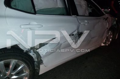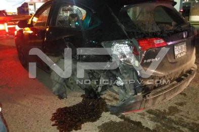 Mientras que los agentes de la Policía Vial, tomaban nota de lo ocurrido, quienes informaron a su base operativa que se trata efectivamente de un choque por alcanse entre tres vehículos, siendo como presunto responsable uno de la marca Toyota, de color blanco, con las placas de circulación DNX-716-A, que se impacta por alcanse contra una camioneta Honda, HR-V, con placas FPA-70-20, del estado de Coahuila, resultando dañado también otro auto VW, tipo Vento con placas JPE-39-64, del estado de Jalisco.