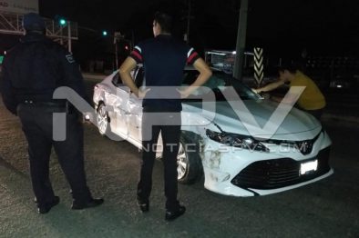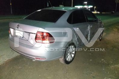 Mientras que los agentes de la Policía Vial, tomaban nota de lo ocurrido, quienes informaron a su base operativa que se trata efectivamente de un choque por alcanse entre tres vehículos, siendo como presunto responsable uno de la marca Toyota, de color blanco, con las placas de circulación DNX-716-A, que se impacta por alcanse contra una camioneta Honda, HR-V, con placas FPA-70-20, del estado de Coahuila, resultando dañado también otro auto VW, tipo Vento con placas JPE-39-64, del estado de Jalisco.