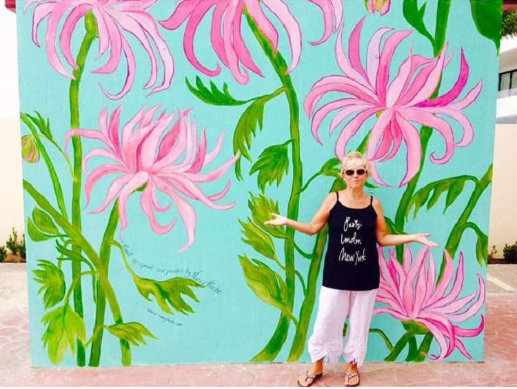 La autora del mural que se pintó hace algunos meses en una de las paredes de los sanitarios públicos de Bucerías ubicadas en las entradas al mar, es la pintora y empresaria, Nancy Hache. Una obra de arte muy bonita que junto con otras que se pintaron en los muros de los sanitarios, le dieron un plus a la imagen visual de esta zona que por cierto, no funcionan la mayoría de estos sanitarios, motivo por el cual ante el abandono por parte de las autoridades, artistas locales, la mayoría residentes extranjeros se dieron a la tarea de embellecer el lugar con obras de arte tipo mural.