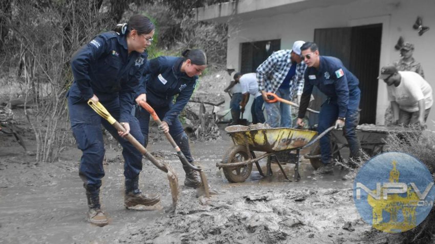 Las labores se realizan por medio de Bomberos de Nayarit, Policías Estatales, la Unidad Cóndor (drones), Guardia Nacional, SEDENA y autoridades municipales quiénes mediante el uso de bombas succionadoras, pipas de agua y herramientas especializadas se encargan de retirar el lodo que quedó invadiendo el interior de algunas de la viviendas de esta localidad.