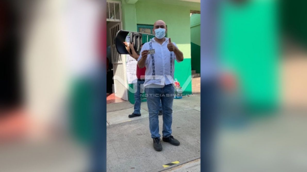 El candidato a la diputación federal por MORENA, Bruno Blancas Mercado, acudió temprano sin problema a emitir su voto en la delegación de Ixtapa.