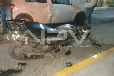 *Un accidente más que ocurrió en la esquina de Ignacio Comonfort y Yucatán con saldo de un lesionado y cuantiosos daños materiales tras chocar auto y motocicleta