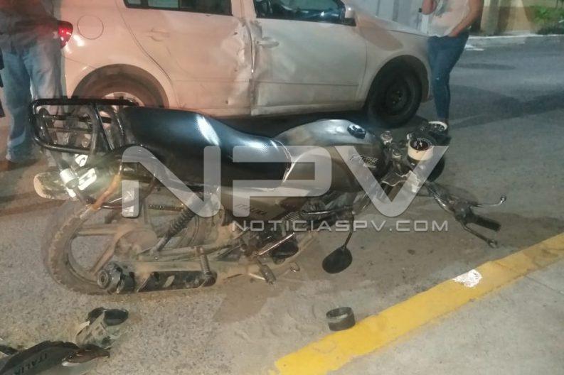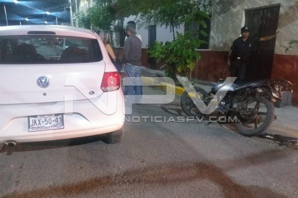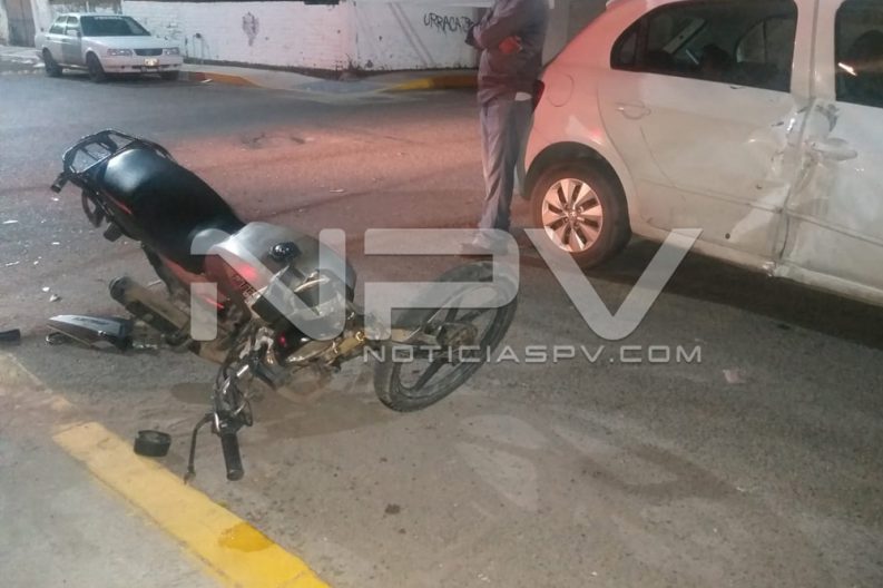 Ahí en ese peligroso cruce de calles, se registró otro accidente más entre una motocicleta de la marca Italika de color gris con las placas K5YNM, y un auto compacto de la marca Volkswagen, tipo Gol, de color blanco, con las placas de circulación JKX-50-41, donde resultó lesionado el motociclista al momento de estrellarse sobre el costado derecho del vehículo, al parecer por corte de circulación.