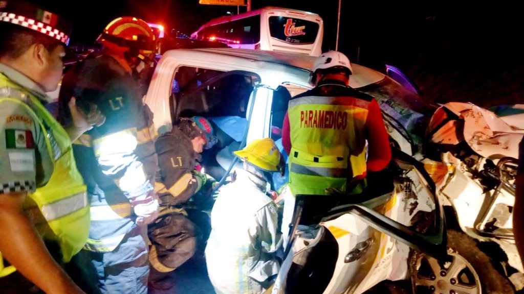 El reporte ingresó a través del 911, movilizando a las unidades PC-116, PC-121 y PC-108, con personal de rescate y paramédicos a bordo. Al llegar al lugar, los rescatistas se encontraron con un choque entre un camión de pasajeros marca Irizar, color blanco y una camioneta Mitsubishi L200 blanca.