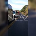 Esta mañana de viernes alrededor de las 7:10 horas, ocurrió un choque entre dos camiones de pasajeros (Unidad de Autotransportes Compostela y otro de Autobuses del Pacífico) a la altura del Km. 111 de la carretera 200 en las inmediaciones de Las Lomas, deja cerrada la vía en ambos sentidos.