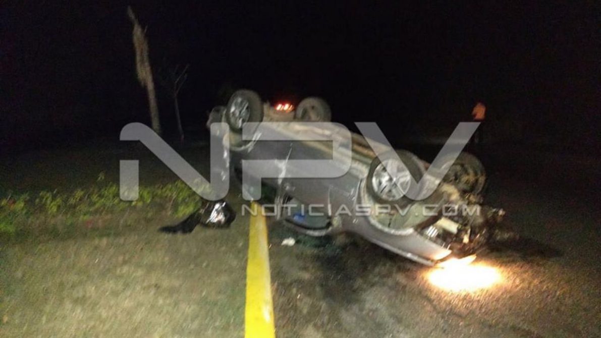 Quedó destrozado y con las llantas hacia el cielo, cerca del crucero a La Manzanilla *El vehículo fue dejado abandonado en el lugar, pues a la llegada de las autoridades, no hallaron a nadie