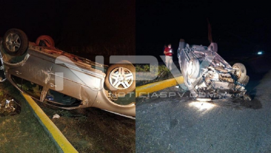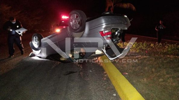 La noche de este lunes de registró aparatosa volcadura sobre la carretera que lleva de la Cruz de Huanacaxtle a Punta de Mita, cerca del crucero a La Manzanilla, en donde un vehículo compacto quedó destrozado sobre la carretera.