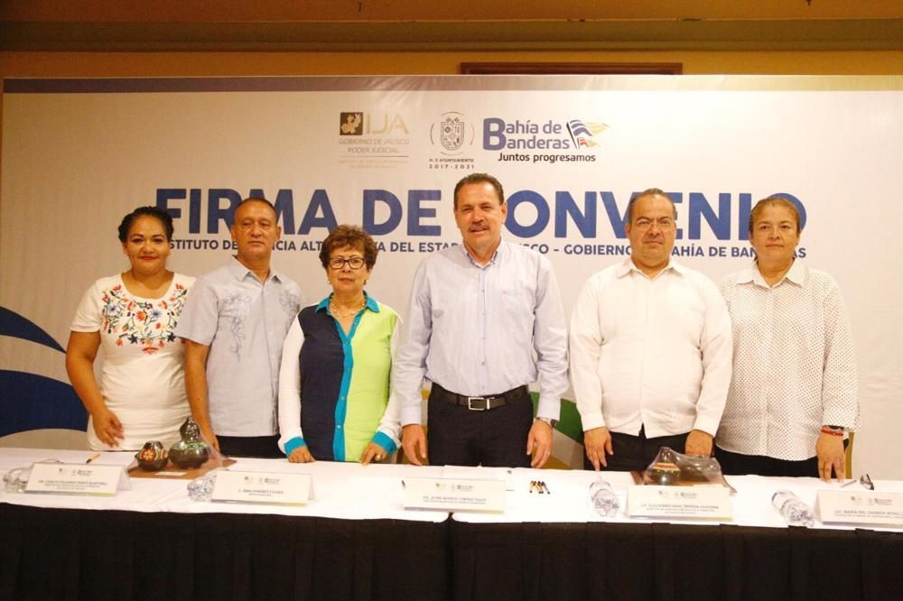 Así lo expresó el presidente municipal de Bahía de Banderas, doctor Jaime Cuevas Tello, al hacer uso de la voz, durante la firma del convenio de colaboración con el Instituto de Justicia Alternativa del Estado de Jalisco (IJA), en la que estuvo acompañado por su esposa, la presidenta del Sistema DIF, L.T.S. Ana Esperanza Berumen de Cuevas, síndico y regidores del Cabildo.