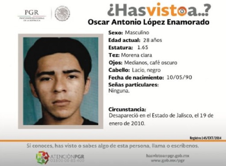 En estos próximos días emprenderán acciones para tratar de dar con el paradero del joven Oscar Antonio López Enamorado, originario de Honduras, desaparecido el 19 de enero del 2010, y quien llegó a radicar al poblado de Carrizo, en Jalisco. Desde ese día hasta hoy, la mamá del joven Ana Enamorado, pide conocer la verdad sobre el paradero de su hijo y solicita ayuda de la ciudadanía de nuestra región para obtener información al respecto, Y es que, el último dato que obtuvo sobre su hijo es que estaba viviendo en Puerto Vallarta.