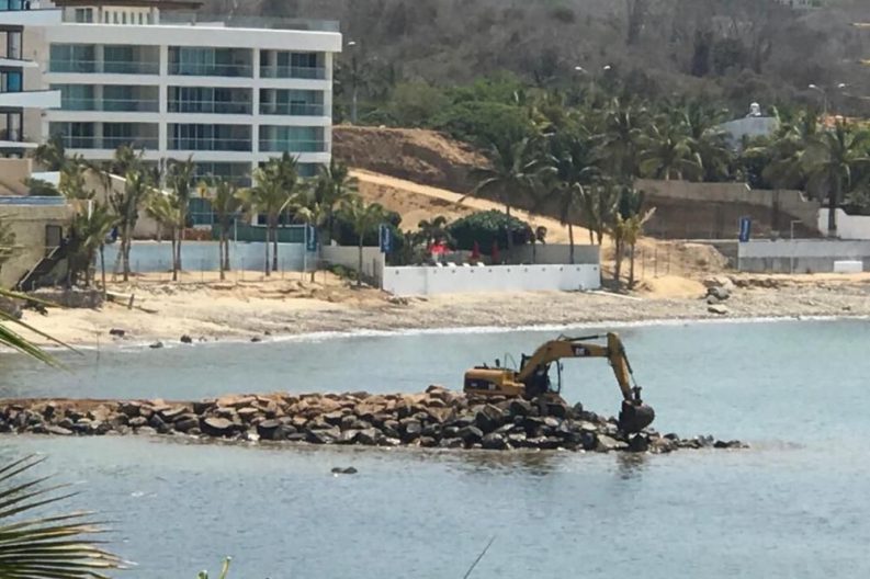 Desarrollos turísticos a diestra y siniestra meten toneladas de piedras en playa y mar de Bahía de Banderas, Nayarit; son Punta Esmeralda y Desarrollo Narval, según reportan desde estas comunidades