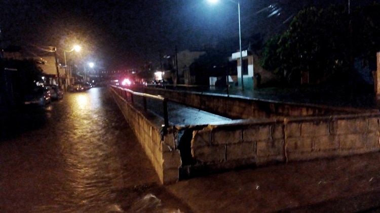 *Sin malla ciclónica el canal de desagüe del Boulevard Las Palmas de Valle Dorado, se convierte en una trampa que podría ser mortal para conductores de vehículos y peatones que no conocen la zona luego de una copiosa lluvia que se registró la noche de este lunes 17 de julio 2017…