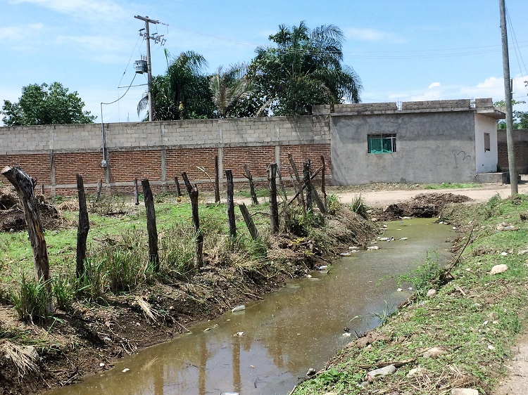 Canal de agua estancada lleno de todo tipo de basura, a la fecha se desconoce si este canal es propiedad pública o propiedad privada.
