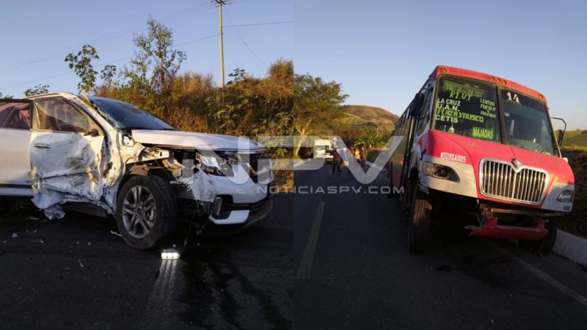 Aparatoso accidente se registró sobre la carretera federal 200 Tepic Puerto Vallarta, entre los límites de los municipios de Xalisco y Compostela, en donde se vieron involucrados un camión del transporte público y dos vehículos particulares.