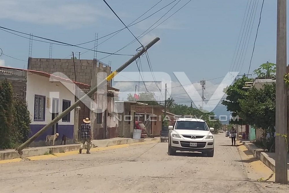 Manifiestan vecinos que se atoró en los cables de fibra óptica y partió en dos el poste que quedó atravesado en la calle