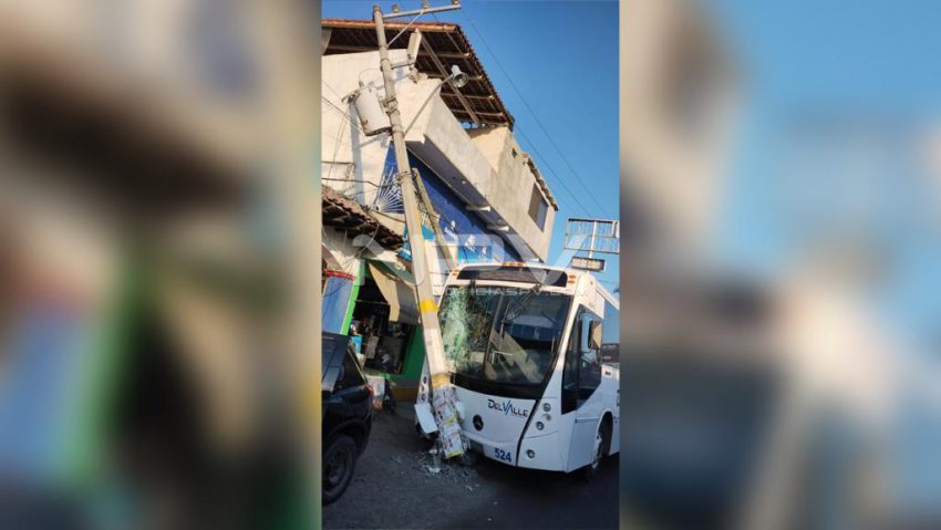 La tarde este lunes se registró fuerte accidente en el poblado de Mezcales, Nayarit, en donde un camión de la ruta del Valle se estampó contra un poste de la Comisión Federal de Electricidad, al cual le causó daños considerables, pero además dejó sin luz a parte del poblado de Mezcales.