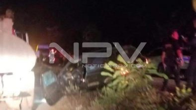 Aparatosa carambola se registró la madrugada de este viernes sobre la carretera federal 200 dentro del municipio de Compostela, en donde se vieron involucrados cuatro vehículos, uno de ellos del transporte público.