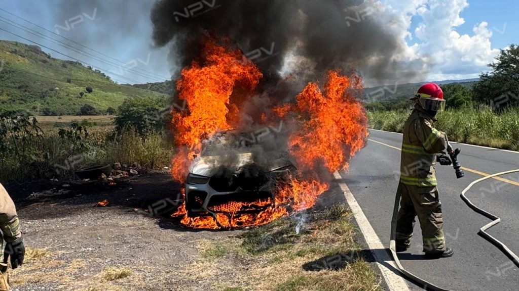 Para brindar atención al hecho, el reporte fue canalizado de manera inmediata a los Bomberos de Nayarit, con sede en el municipio de Jala, mismos que se condujeron al kilómetro indicado, a su arribo o observaron una camioneta de la marca BMW, en color blanco, en total y libre combustión.