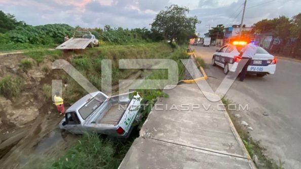 Camioneta que cayó a un canal pluvial entre los poblados de San Vicente y El Porvenir