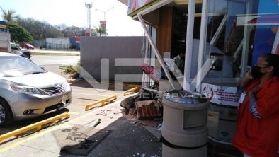 Reportan un accidente en el poblado de Bucerías, donde una camioneta Toyota causó daños en la tienda Kiosko de Los Picos, luego de que el conductor perdió el control y se estrelló contra la puerta de ingreso, donde afortunadamente no resultaron personas lesionadas.