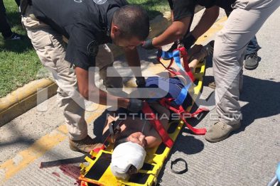 Los agentes de Tránsito Municipal, fueron alertados del accidente y se dirigieron al sitio indicado en la patrulla PV-145, donde al arribar se percataron de que los paramédicos del hospital CMQ, estaban brindando los primeros auxilios a una mujer que estaba tirada en el pavimento, la cual presentaba lesiones en rodillas y ambos brazos, además de que estaba golpeada de la cabeza, por lo que luego de revisarla, la abordaron a la ambulancia AM-5, en la que la llevaron a recibir atención médica a la clínica número 19 del Seguro Social de Mezcales.