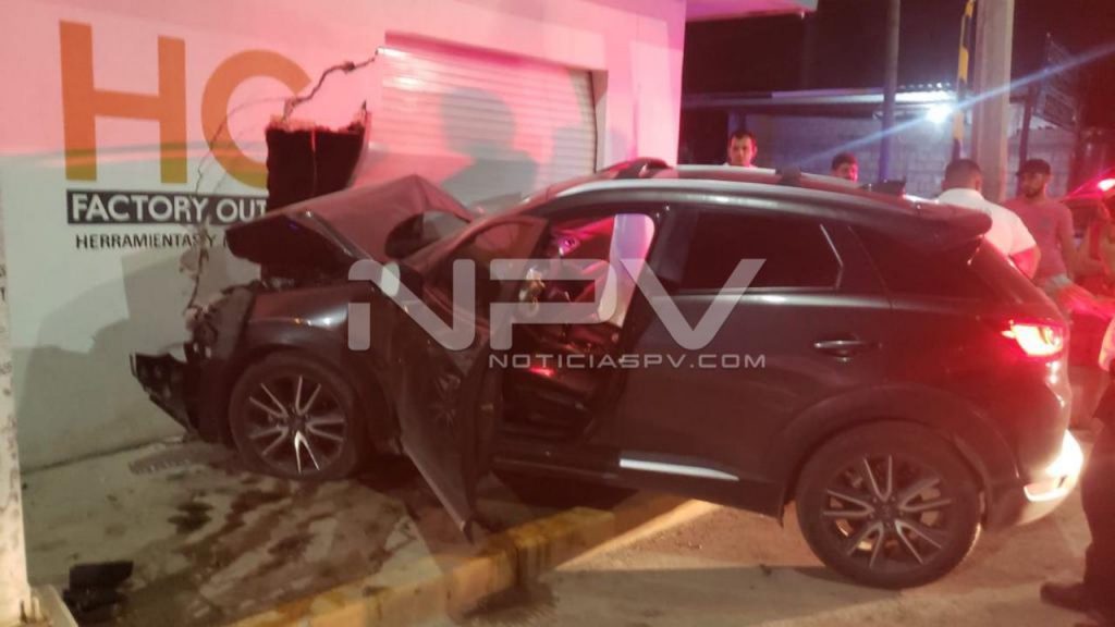 Al lugar de los hechos llegaron elementos de la patrulla PV-159 de vialidad municipal, quienes encontraron estampada contra la pared de la finca número 72 de la calle Francisco Villa y 12 de Octubre, una camioneta Mazda tipo CX 3 en color gris con placas de circulación del estado de Nayarit.