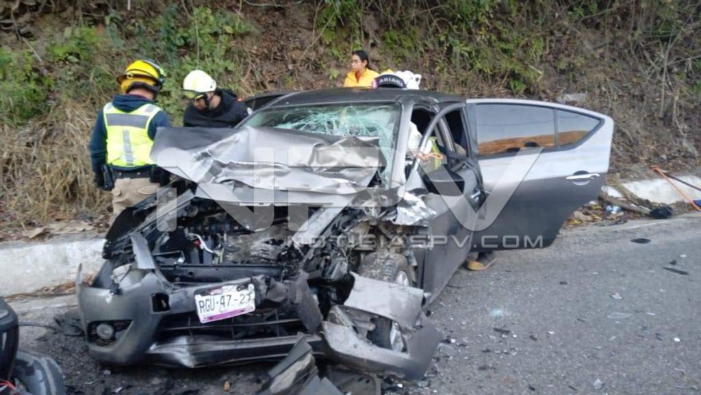La mañana de este lunes se registró brutal choque de frente, entre una camioneta y un auto compacto sobre la carretera Higuera Blanca a Sayulita, a la altura de la zona conocida como La Calera en el municipio de Bahía de Banderas, Nayarit.