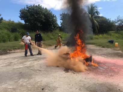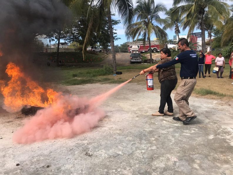 Continuando con las actividades de capacitación, la Unidad Municipal de Protección Civil y Bomberos de Bahía de Banderas, impartió un curso a empleados de 15 comercios, sobre el uso correcto del equipo extintor de polvo químico.