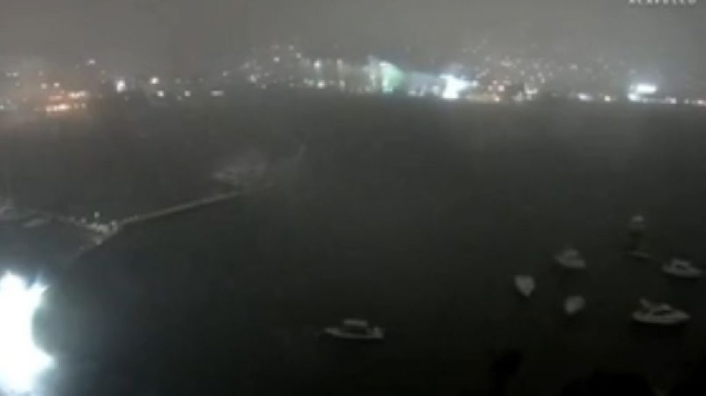 Y también se ve como una bruma comienza a recorrer todo el puerto así como una intermitencia en las luces alrededor del mismo debido a la potencia de los vientos y las fuertes lluvias que trajo consigo el potente huracán John que hasta el momento ha dejado un saldo de 13 personas muertas, 4 eran menores de edad.