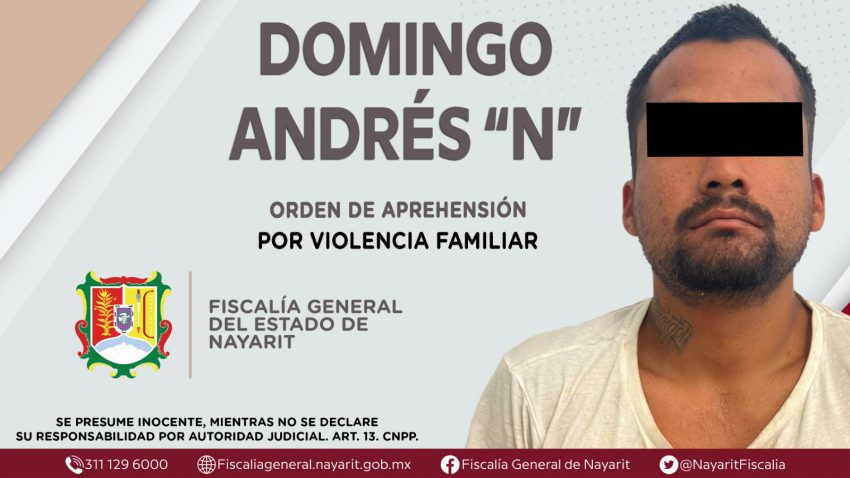 El pasado martes, elementos de la Agencia de Investigación Criminal de Nayarit capturaron a Domingo Andrés «N» en el municipio de Bahía de Banderas, tras ejecutar una orden de aprehensión en su contra por su presunta participación en un caso de violencia familiar en agravio de una persona de identidad masculina, cuya identidad se mantiene en reserva.