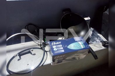 Los Policías en ese momento aseguraron a un hombre y una mujer, a los que les encontraron en su poder 2 Plasmas de 32 pulgadas de color negro marca Phillips y LG, un DVD marca LG, color negro, una maleta negra de viaje marca Ambrodge, una bomba sumergible marca Vortex, color gris con rojo, Rx2 VORTEX, dos lámparas para jardín marca Hamton Bay, color negro, una bomba marca Siemens motor abierto Armazon 56, color naranja de 1.5 HP, además de un sartén marca Tefal color negro, con tapa de cristal, dos porta pantalla color negro, una plancha marca Oster, color blanco con verde, un moden Sky HD, con cargador y control color negro, un control LG.
