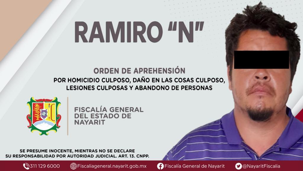 La Fiscalía General de Nayarit, a través de la Agencia de Investigación Criminal, ha cumplido una orden de aprehensión contra Ramiro «N» por su presunta participación en un incidente de tránsito ocurrido el sábado 29 de abril en la carretera federal 200 Tepic Puerto Vallarta, en la localidad de Mesillas, municipio de Compostela, donde fallecieron 18 personas. Según la ley, los delitos que se le imputan son homicidio culposo, daño en las cosas culposo, lesiones culposas y abandono de personas.