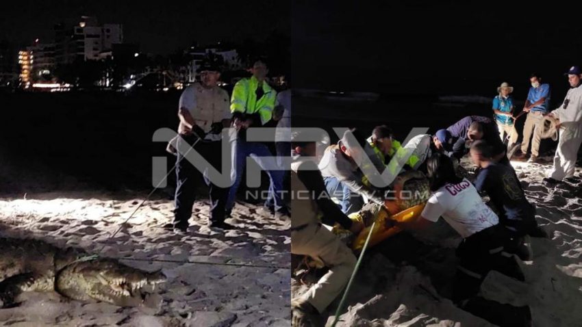 Comunicado.- La Secretaría de Seguridad y Protección Ciudadana a través de la Base de Nuevo Nayarit de Protección Ciudadana y Bomberos, dio a conocer que capturaron un cocodrilo para su reubicación, esto en playa de Nuevo Nayarit de Bahía de Banderas.