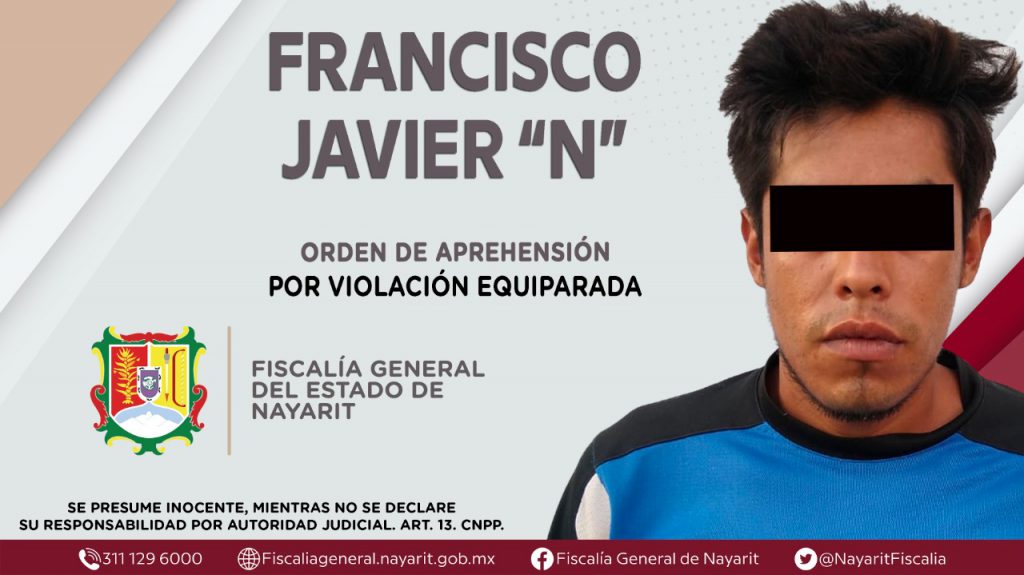 Comunicado.- Personal de la Agencia de Investigación Criminal de Nayarit dio cumplimiento a una orden de aprehensión en el municipio de Bahía de Banderas contra Francisco Javier “N”, por su presuntiva responsabilidad penal en hechos que la ley juzga como delito de violación equiparada, cometido contra una menor de edad de identidad reservada.