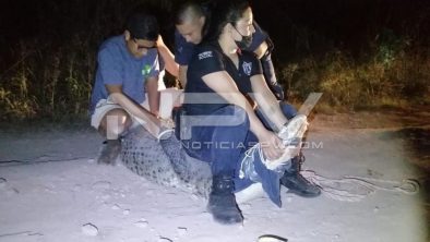 Los elementos de la Policía Municipal procedieron a asegurar el lugar, llegando más tarde los elementos de la Patrulla Verde, quienes se hicieron cargo de capturar al Cocodrilo, llegando en su apoyo al personal de Ecología, quienes procedieron a revisarlo, dándose cuenta de que el mismo se encontraba en perfectas condiciones de salud.