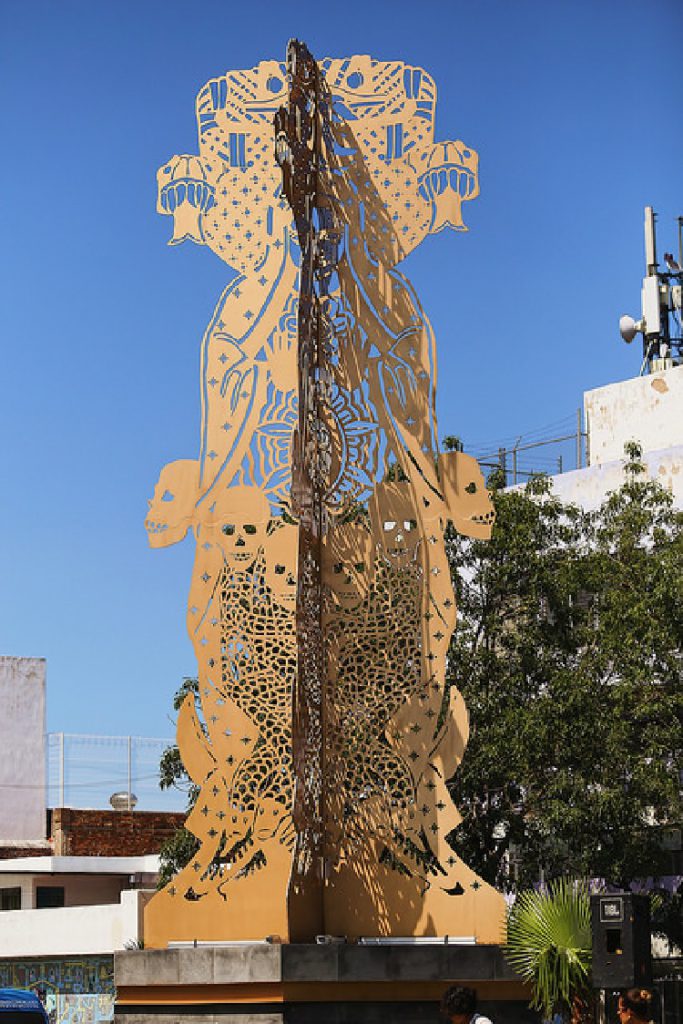 , luego de la inauguración de Sincretismo, una escultura de nueve metros hecha por Ismael Vargas, que forma parte de un polémico programa municipal de arte urbano que con 40 millones de pesos impulsa el alcalde Enrique Alfaro Ramírez, de Movimiento Ciudadano, para instalar esculturas monumentales en una decena de puntos de la ciudad.