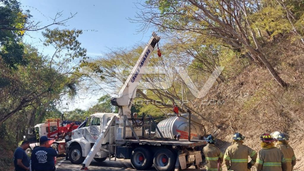 Mientras que Protección Civil y Bomberos de Compostela informó, que se realiza el trasvase del tanque volcado, personal de Pemex se encuentra trabajando por lo tanto seguirá cerrada la carretera hasta terminar de vaciar los dos contenedores involucrados extendiéndose el horario de apertura de la carretera.