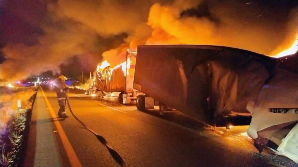 En la carretera 49 Zacatecas-San Luis Potosi se registró la quema de unidades; asimismo, en los municipios de Pánfilo Natera y Trancoso hubo unidades incendidas; además, un camión en la caseta de cobro hacia Calera.