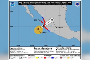 Lidia evolucionó a huracán categoría 2 y se espera toque tierra esta tarde entre Jalisco…