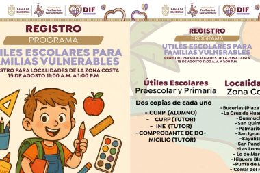 El registro para estudiantes de preescolar y primaria de la Zona Costa será el 15…