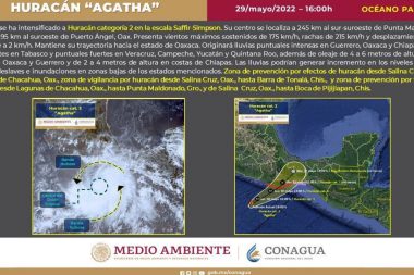 El sistema genera lluvias puntuales intensas en Chiapas y Oaxaca, y muy fuertes en regiones…