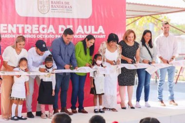 Aula nueva y barda perimetral fue lo que este miércoles entregó la presidenta municipal de Bahía de…