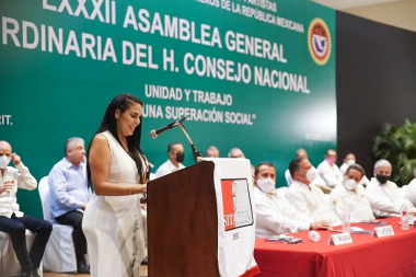 Presente, la alcaldesa de Bahía de Banderas, en la Asamblea número 82 del SYTATIR. Reconoce…