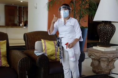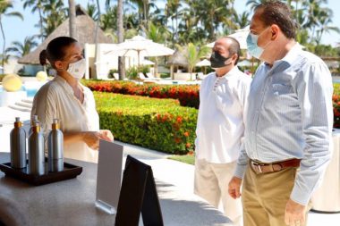 Colaboradores de la hotelería que ya reciben a los primeros visitantes en la Riviera Nayarit, se muestran…
