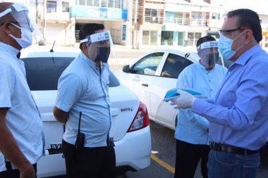 Entrega Jaime Cuevas caretas protectoras a taxistas y comerciantes